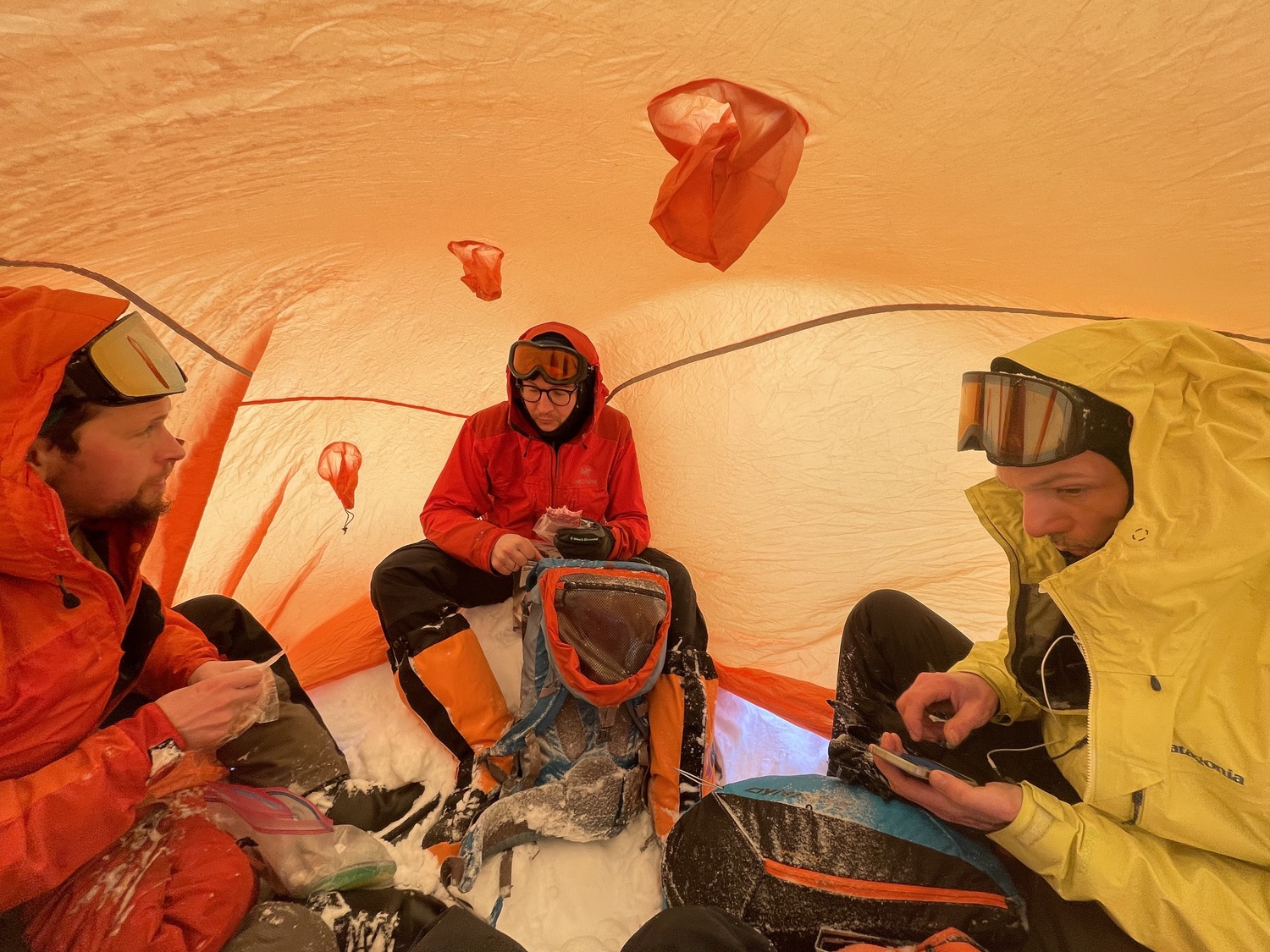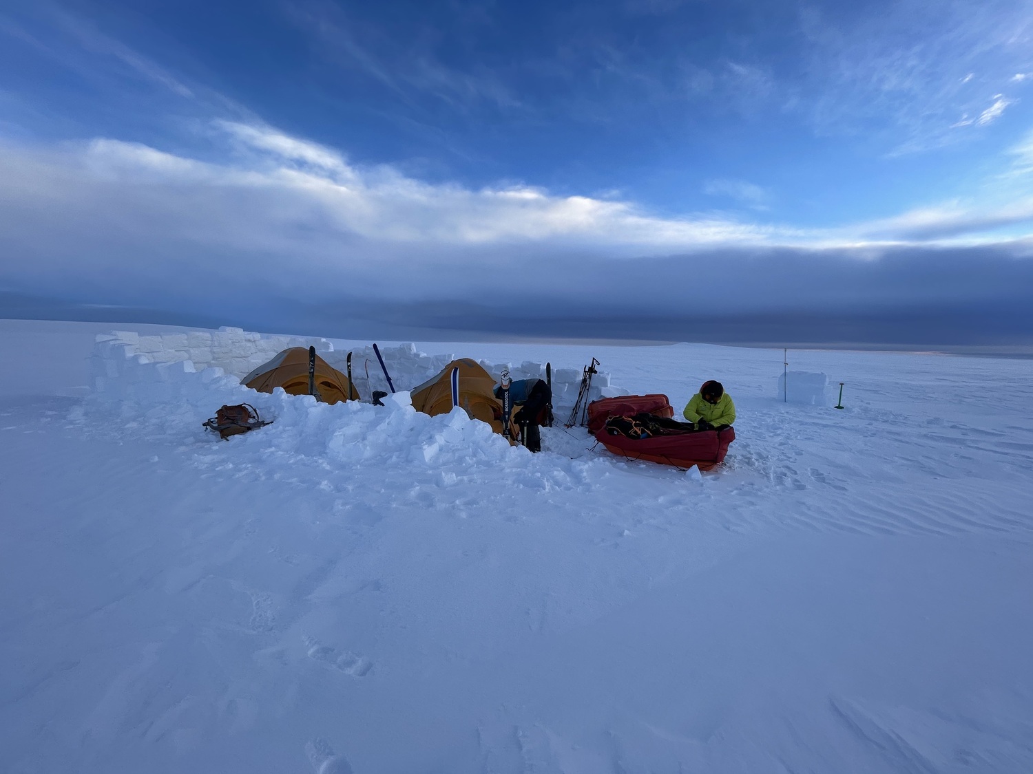 As we conclude our daily skiing, we will allocate 1 to 3 hours to construct a sturdy and comfortable campsite, taking into account the prevailing weather conditions. Once settled, we will melt snow to prepare dinner and to provide drinking water, this also takes some time. Once all the chores are done we can finally go to sleep.