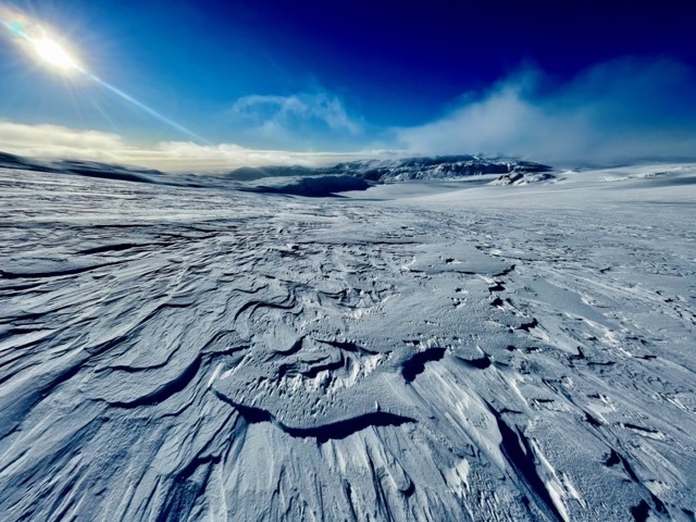 In the early afternoon we will move out. Driving to the start of the ice cap can be tricky and take some time depending on the weather and conditions. Once there, we will travel for a few hours then strike camp